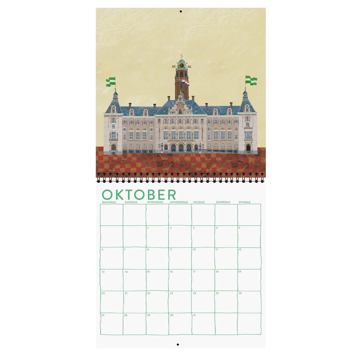 Twaalf kleurrijke maanden, met steeds een andere vrolijke illustratie met een Rotterdams architectuur icoon zoals de Hef, de Kuip, de Markthal, het Stadhuis, de Euromast, de Kubuswoningen, Hotel New York, de Zalmhaven toren, de Aelbrechtskolk, het Groot Handelsgebouw, de Willemswerf en de Plasmolens