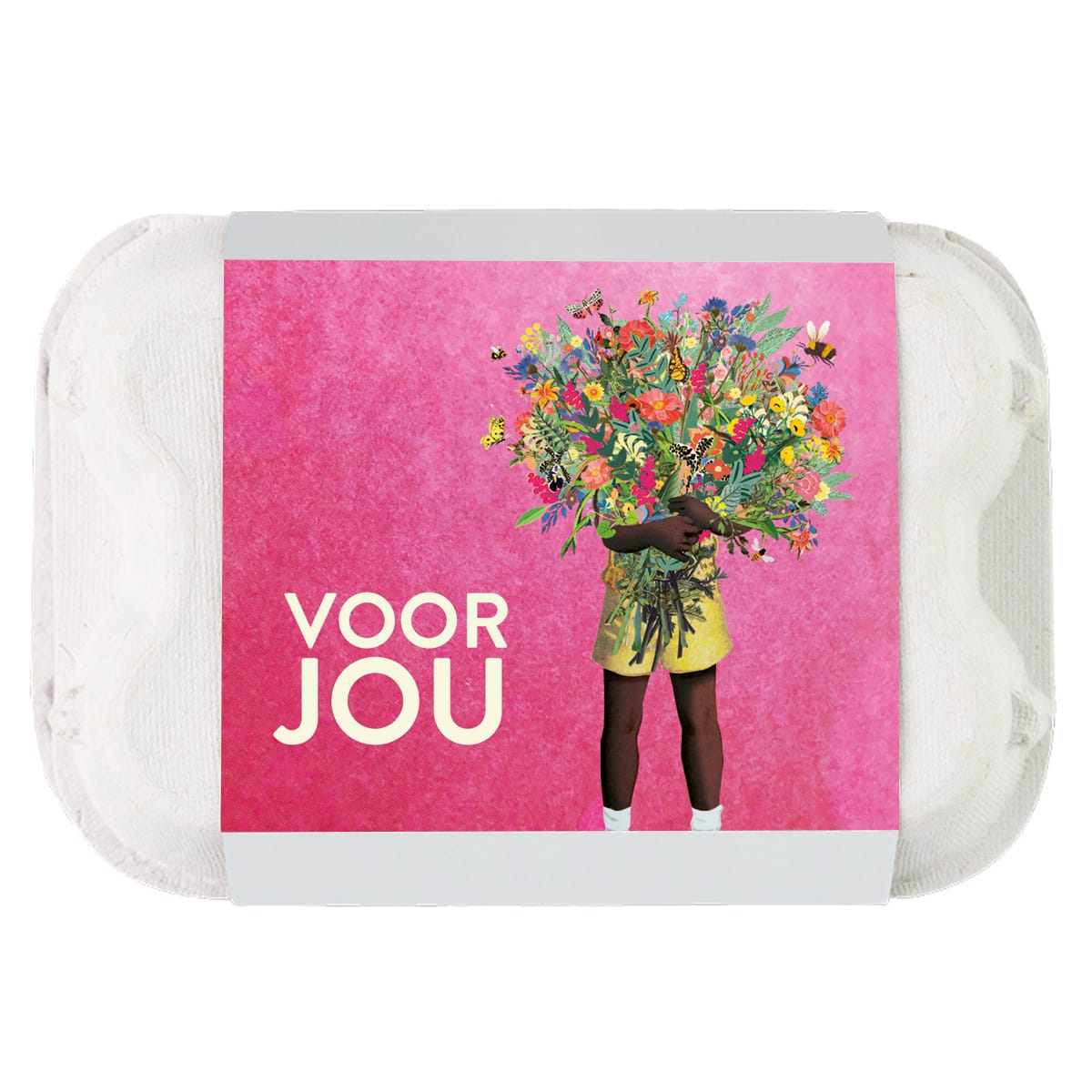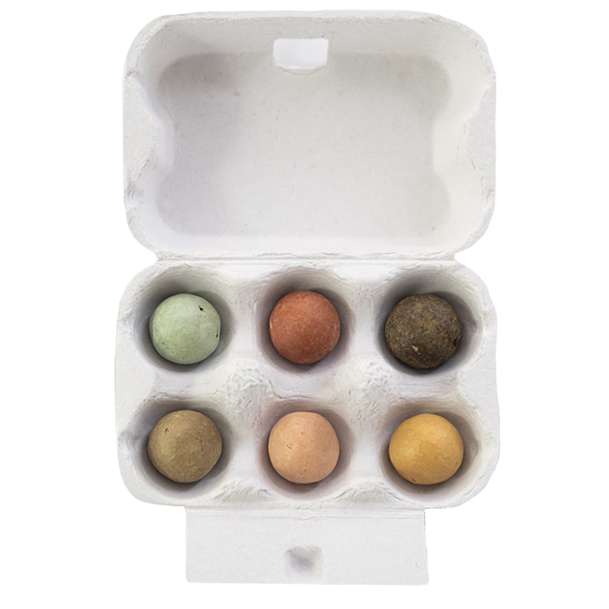Mini eierdoosje met 6 zaadbommetjes. De kleuren van de bolletjes zijn willekeurig